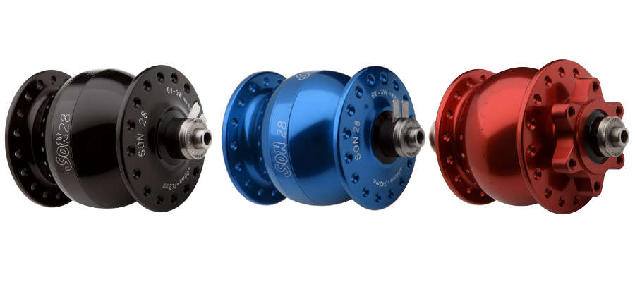 Der SON 28 ist ein universell für alle Laufradgrößen 16" bis 29" zugelassener Nabendynamo. Die Nennleistung erreicht er im 28"-Rad bei ca. 16 km/h (SONdelux 19 km/h). Damit ist er zu empfehlen, wenn bei langsamer Fahrt besonders viel Licht benötigt wird oder andere Geräte betrieben, bzw. deren Akkus geladen werden sollen.